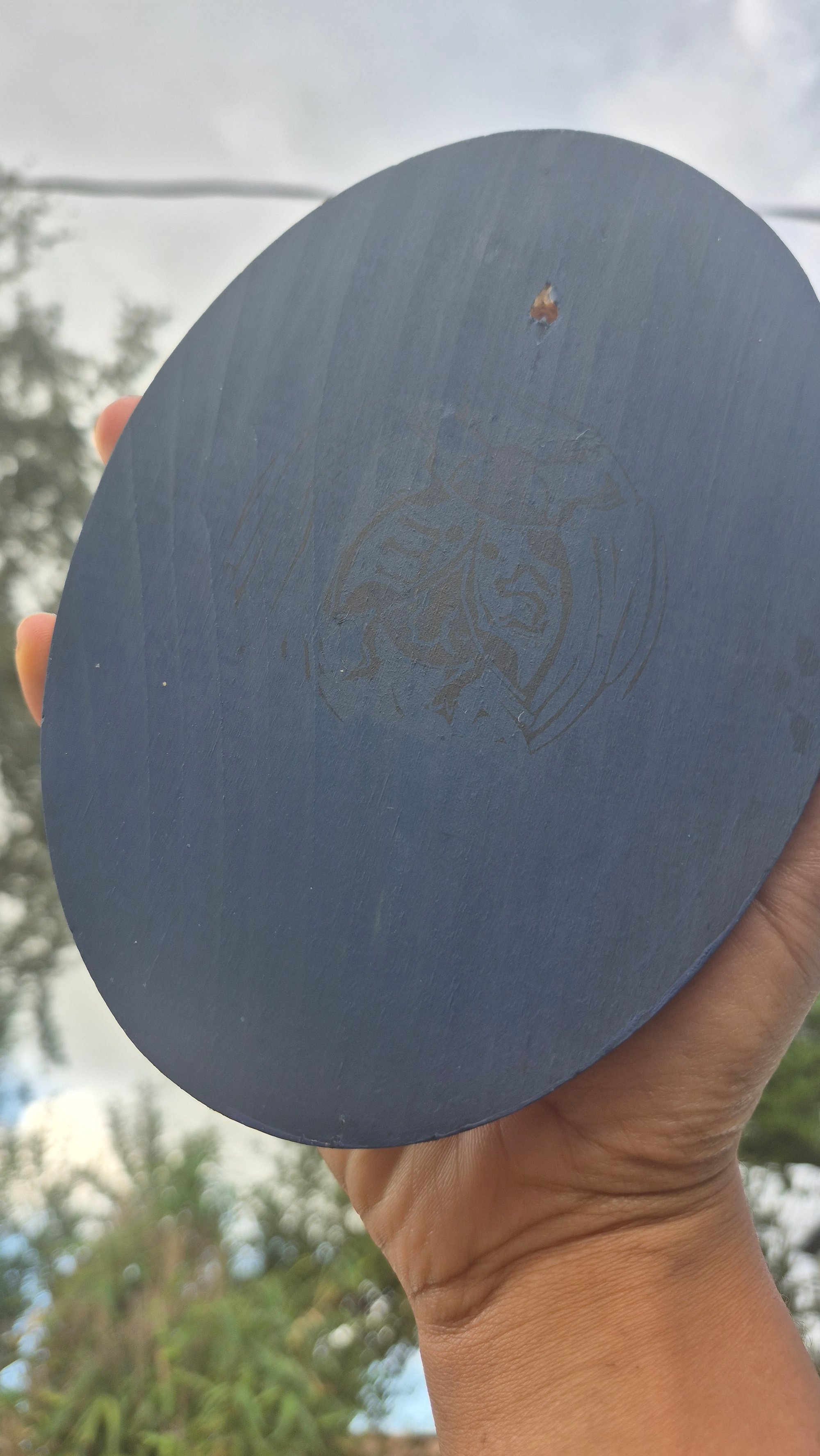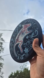 5.13in x 7.13in x 0.75in wood plaque painting of diaphonized mouse with floral pattern around, using gouache and acrylic paint. Hole in the back for easy hanging and will come with command strips.