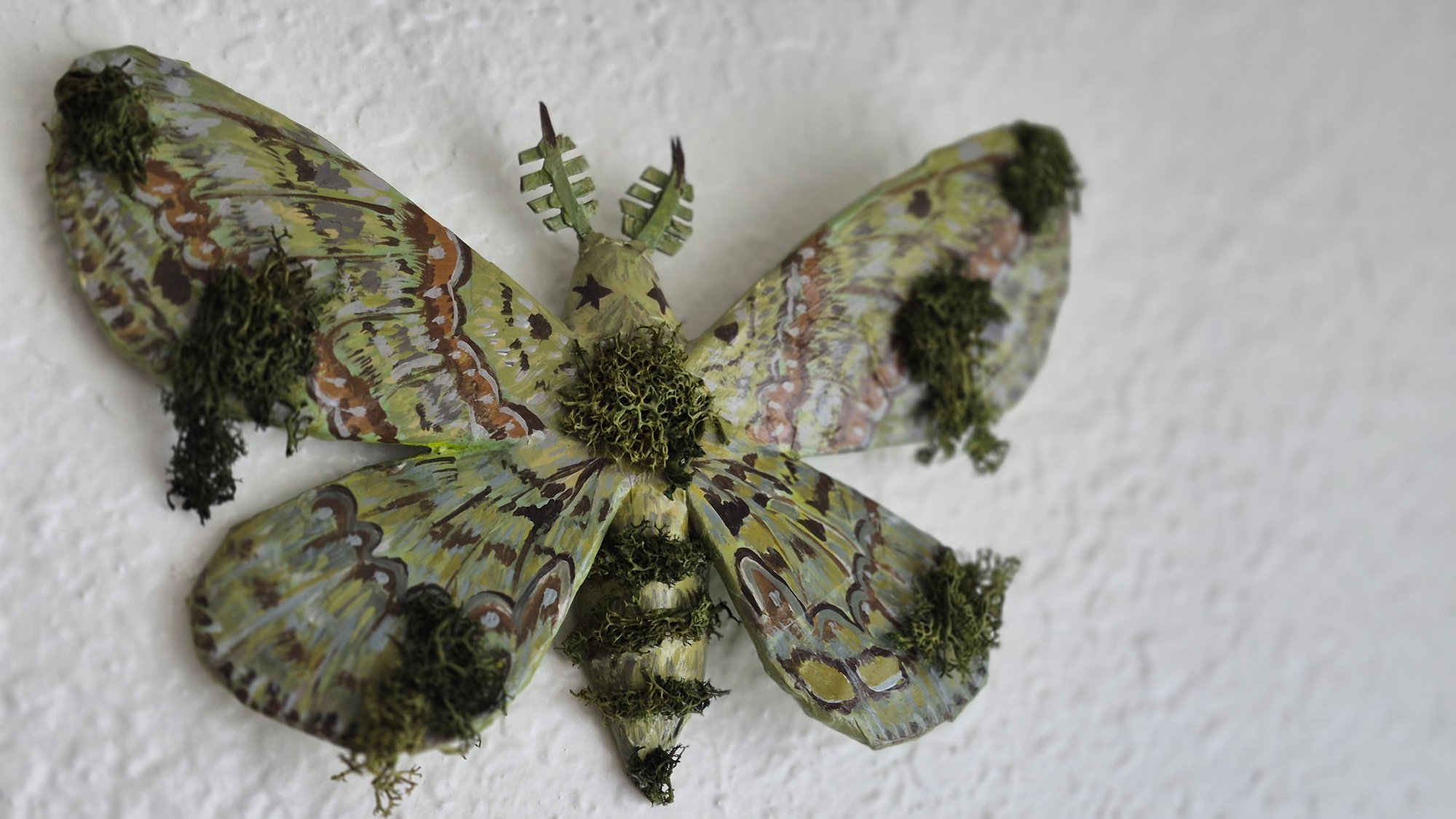 Mossy paper mache moth